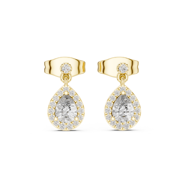 Lightweight yet luxurious, these earrings are crafted in a stunning combination of white, rose, and yellow gold. Featuring 34 meticulously set HPHT diamonds in emerald and round cuts, they offer 0.48 carats of refined sparkle. With a gold weight of 1.70 grams (gross 1.79 grams), this pair blends everyday elegance with timeless charm.