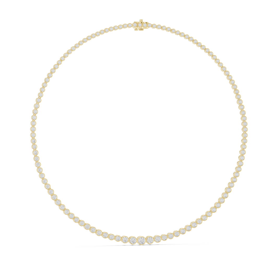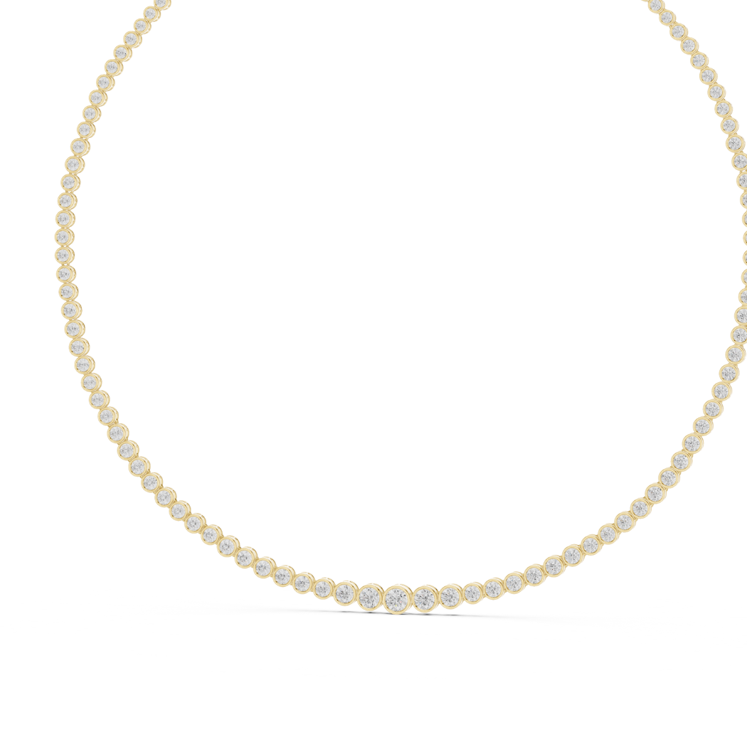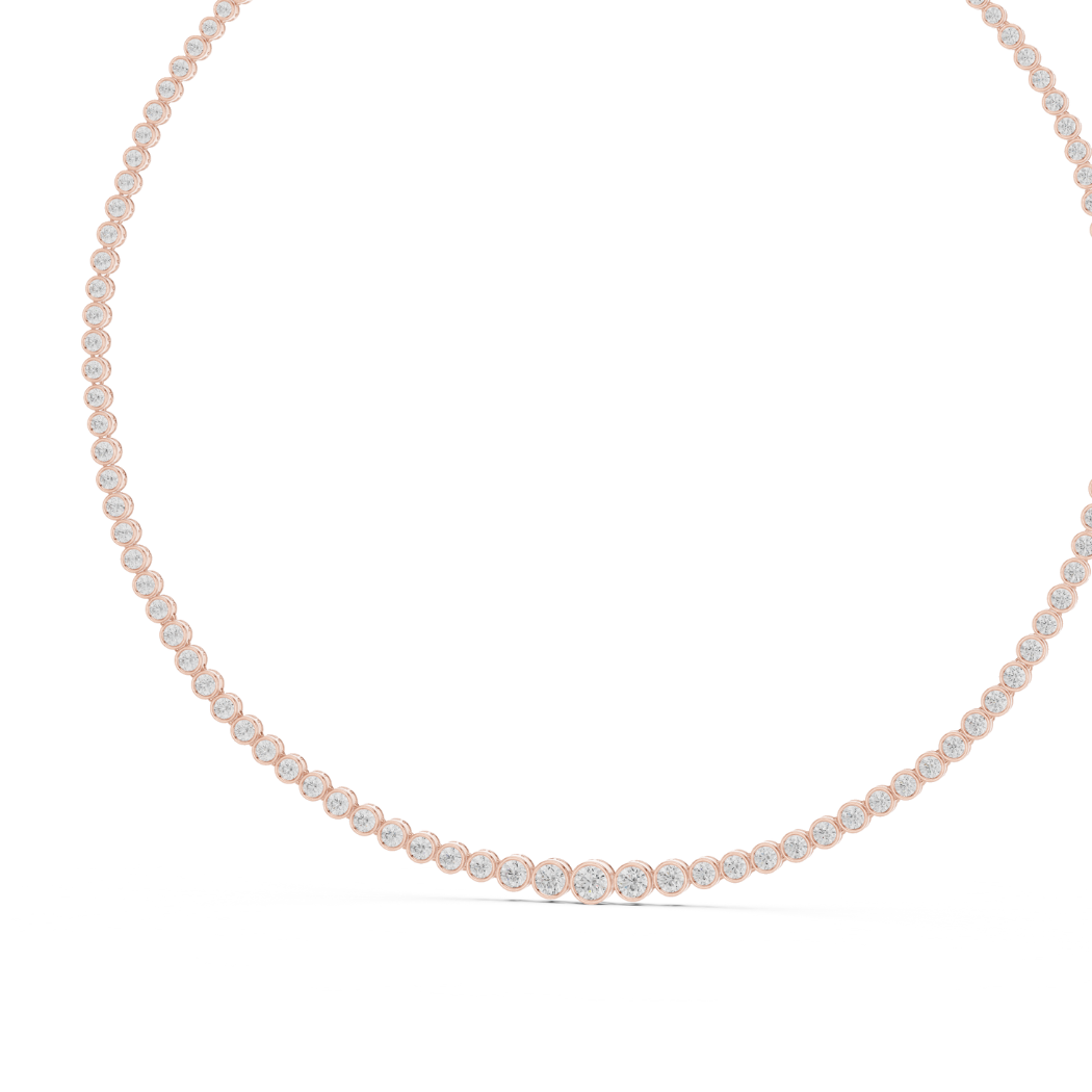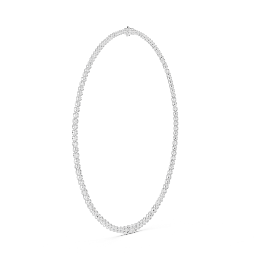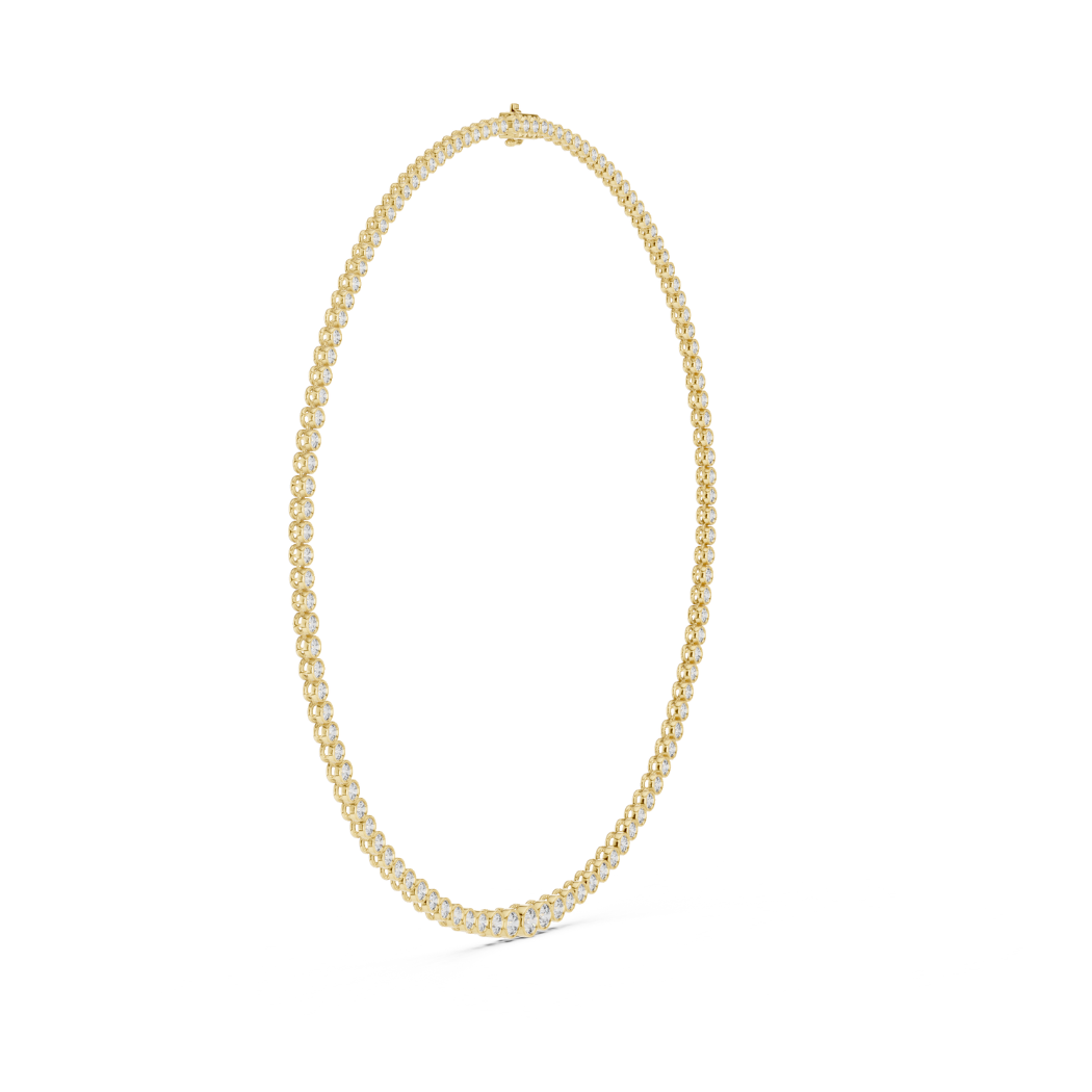 This exquisite necklace is crafted from a harmonious blend of white, rose, and yellow gold, with a stunning array of 117 round HPHT diamonds. Designed to captivate, the piece showcases a total diamond weight of 11.05 carats, radiating luxury and elegance. Whether for a special occasion or everyday opulence, this necklace is the perfect choice.