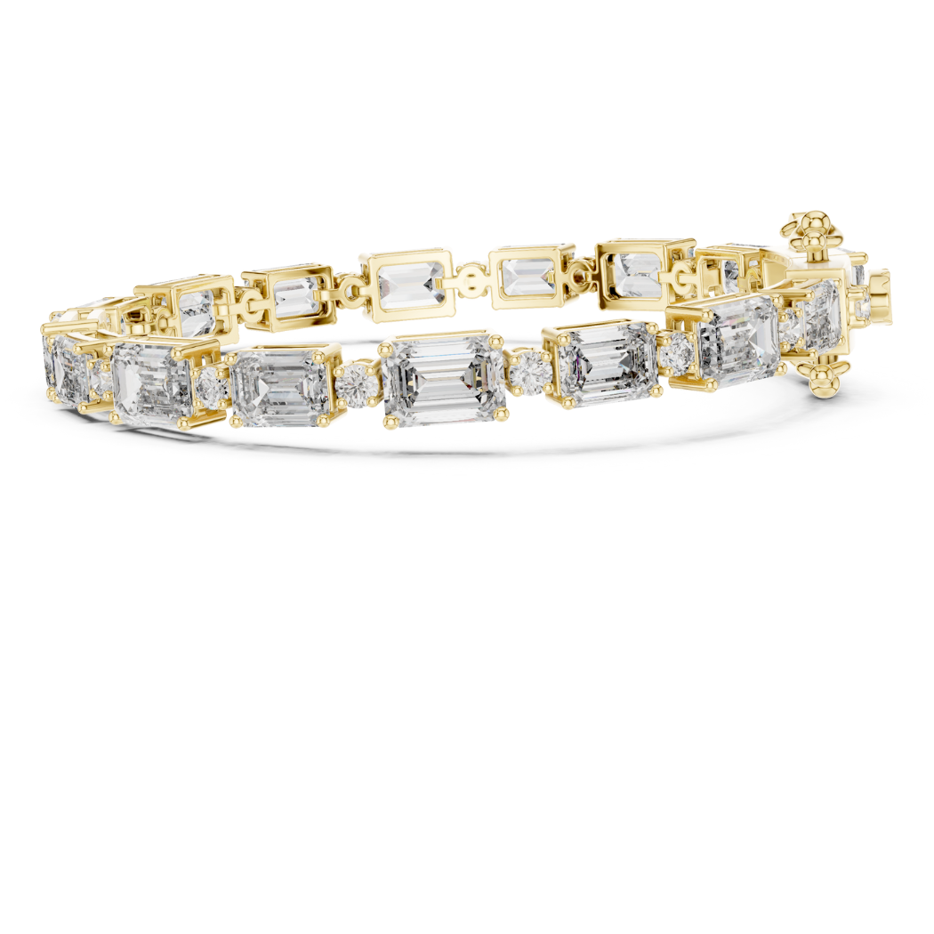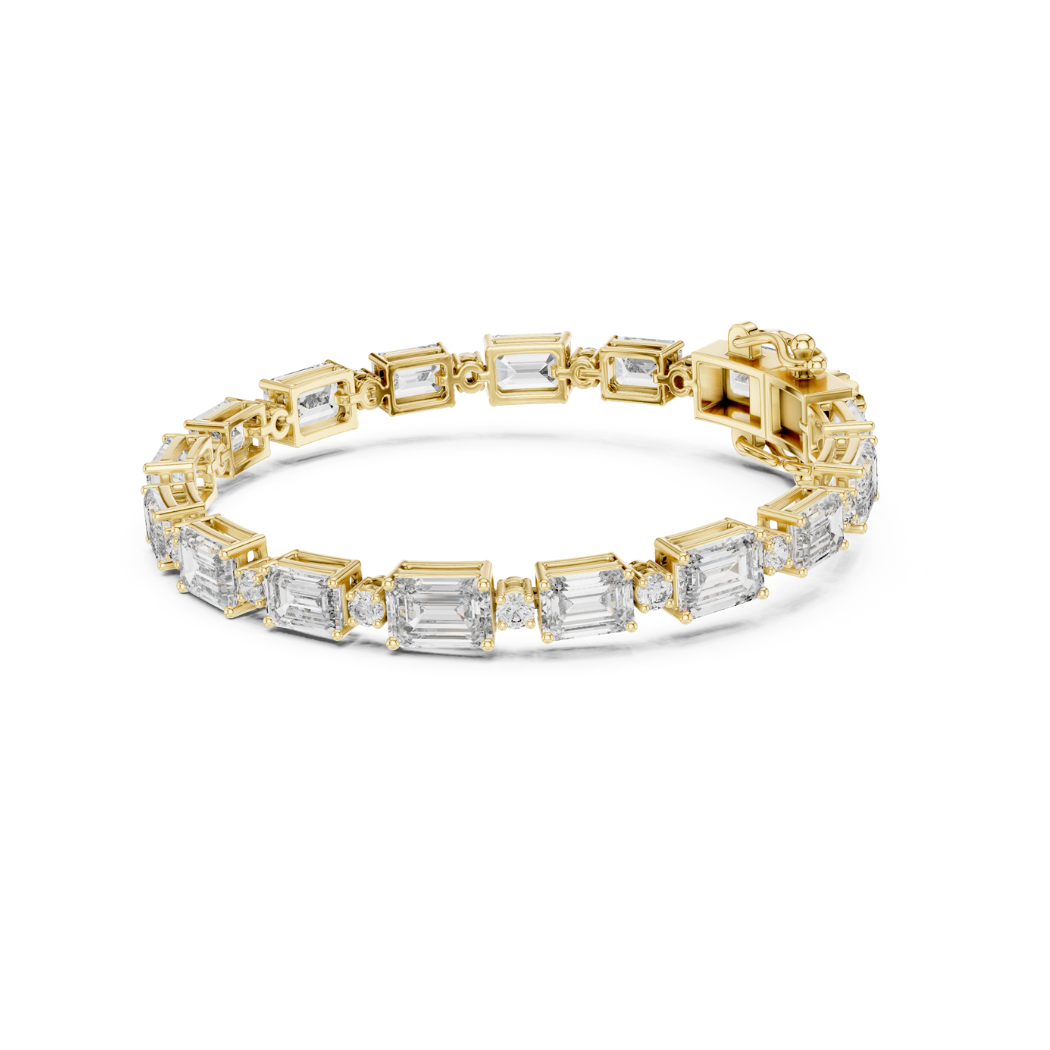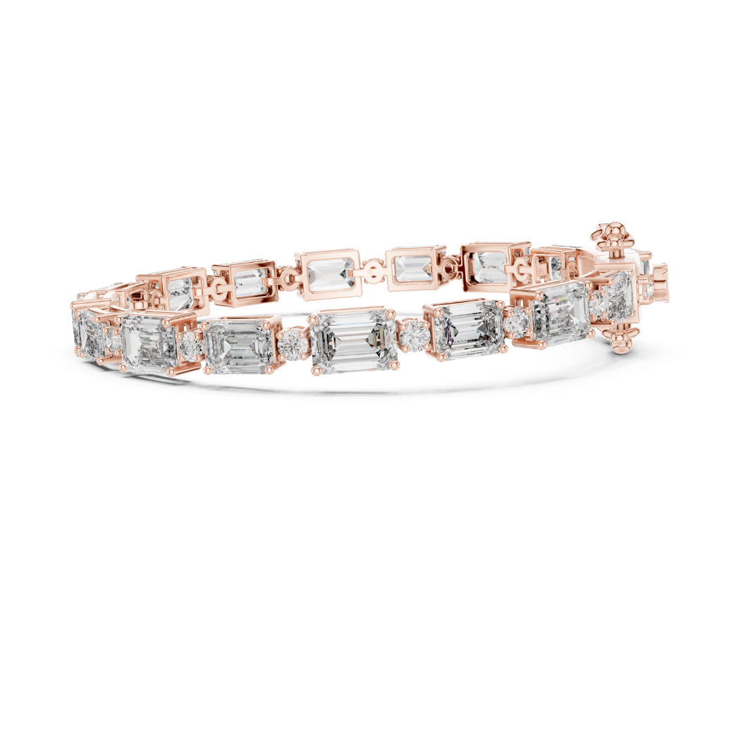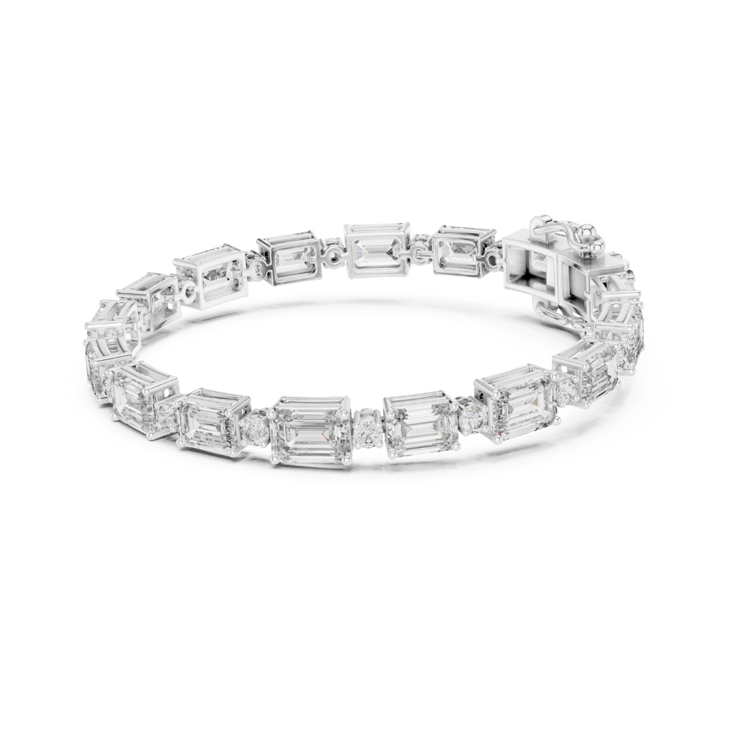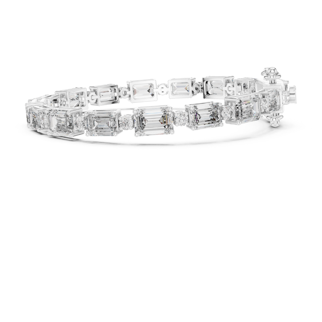 This exquisite bracelet features 33 expertly set diamonds, including a stunning combination of round and emerald cuts, with a total diamond weight of 11.31 carats. The diamonds exude a striking and radiant sparkle, designed to capture attention and enhance the beauty of the wearer.