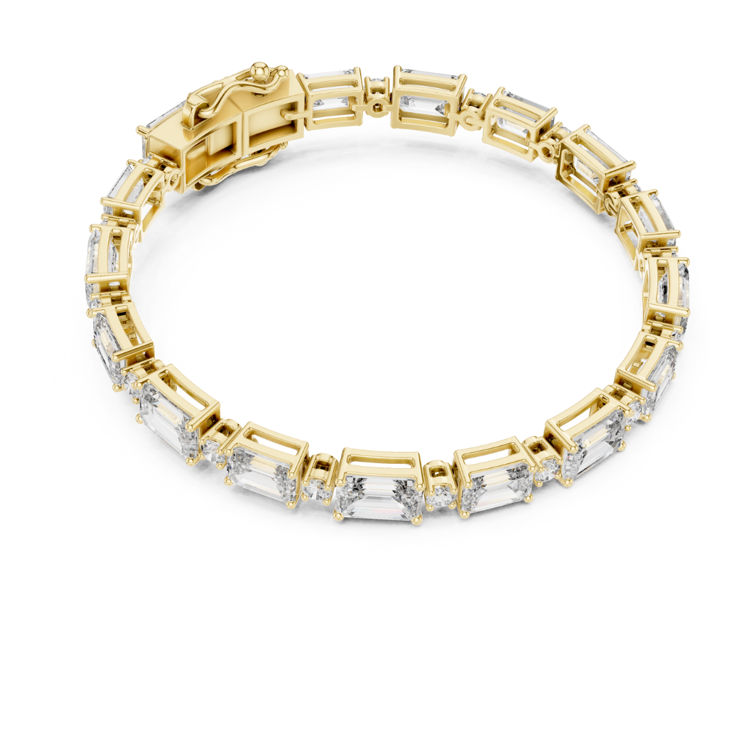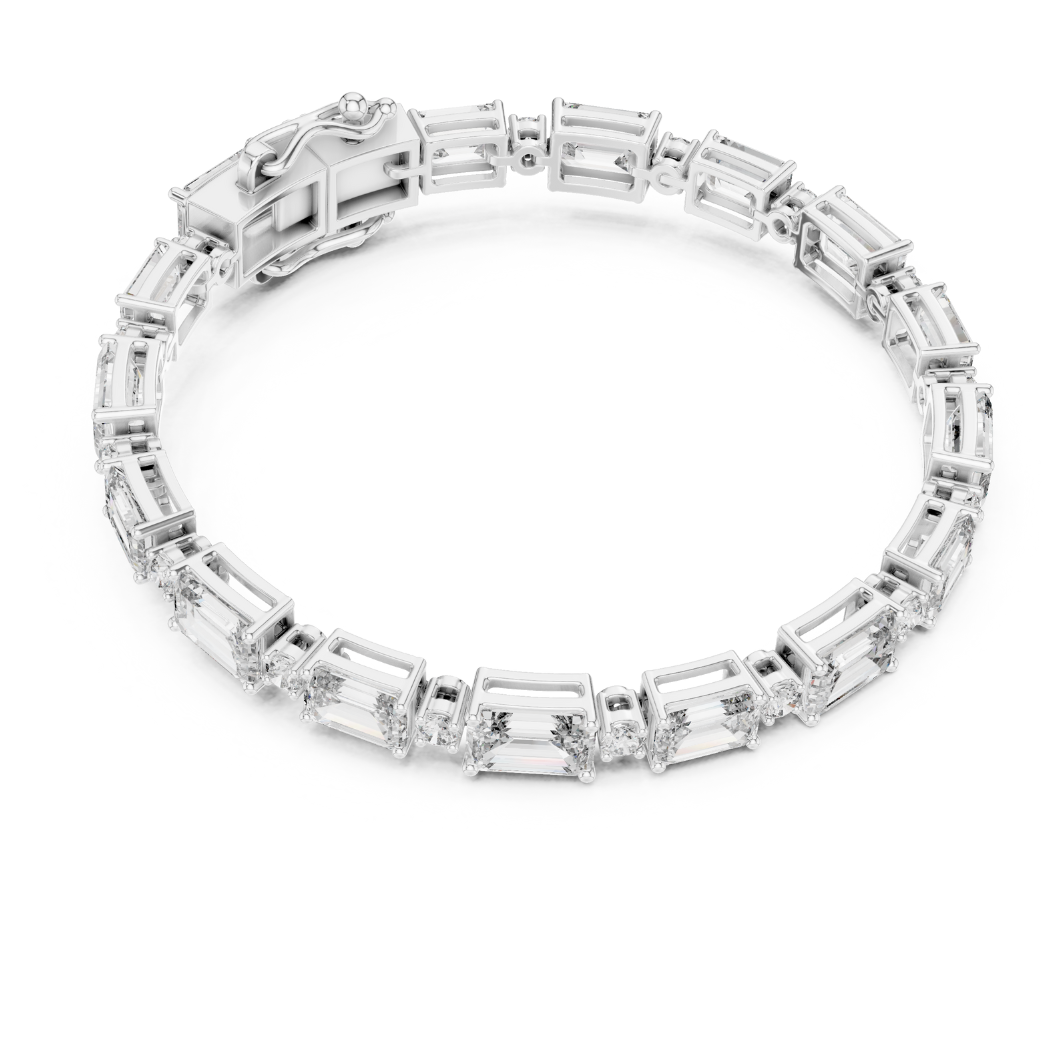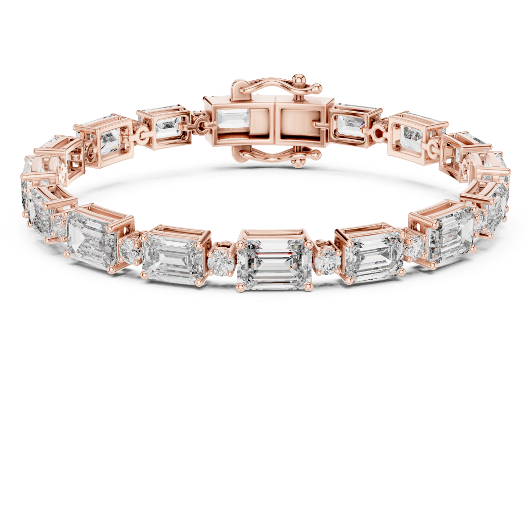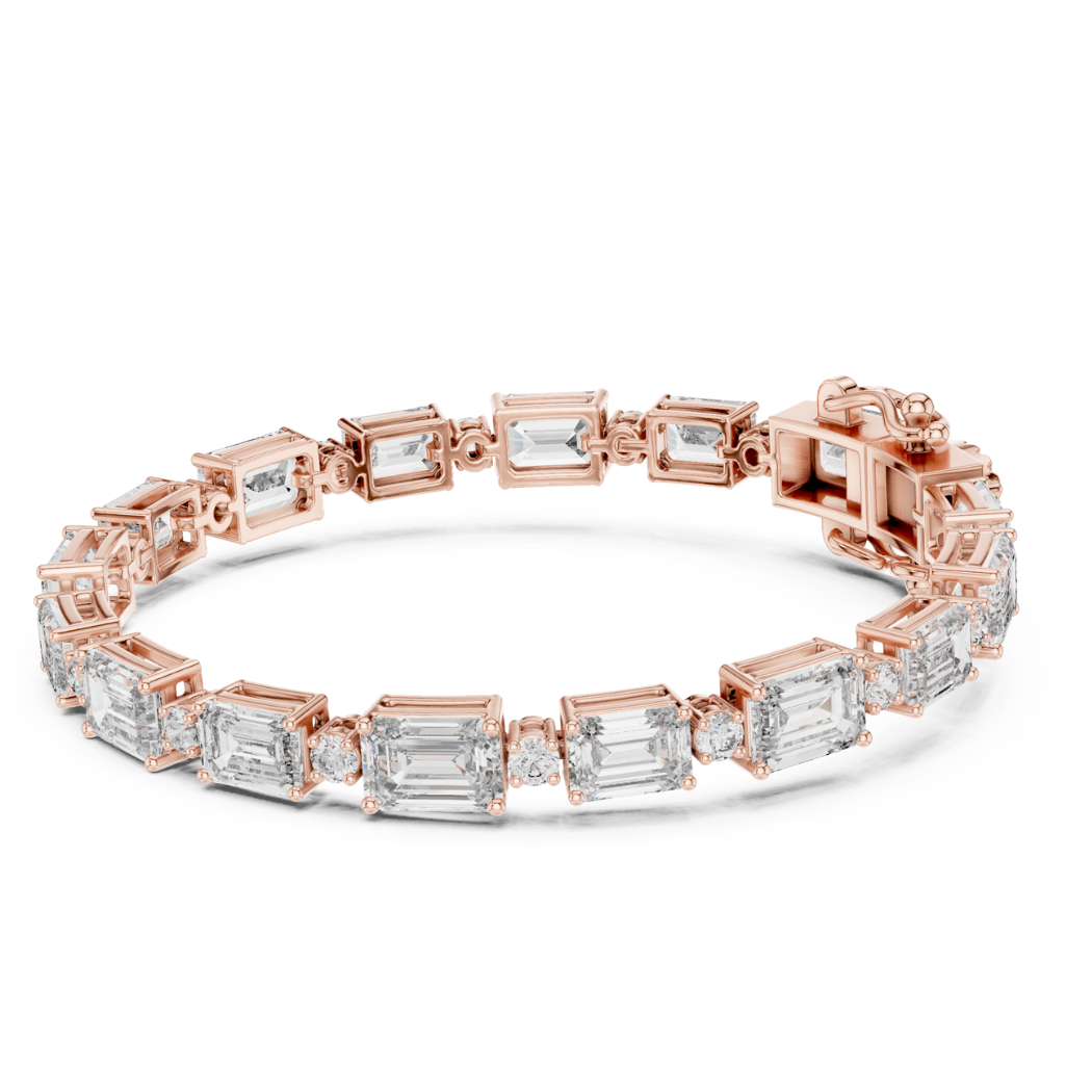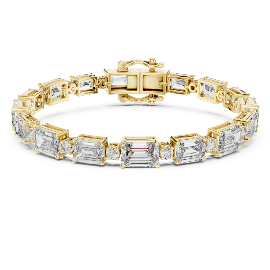 This exquisite bracelet features 33 expertly set diamonds, including a stunning combination of round and emerald cuts, with a total diamond weight of 11.31 carats. The diamonds exude a striking and radiant sparkle, designed to capture attention and enhance the beauty of the wearer.