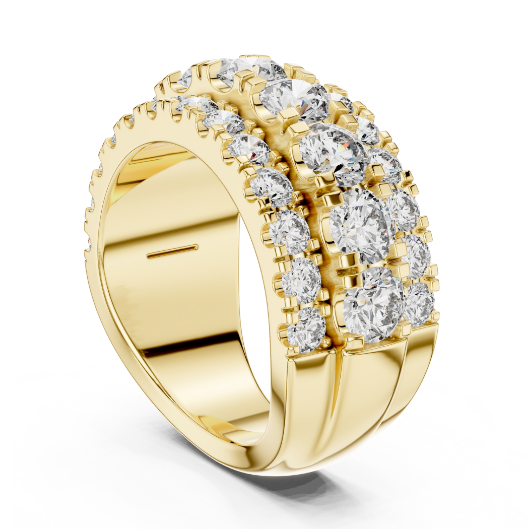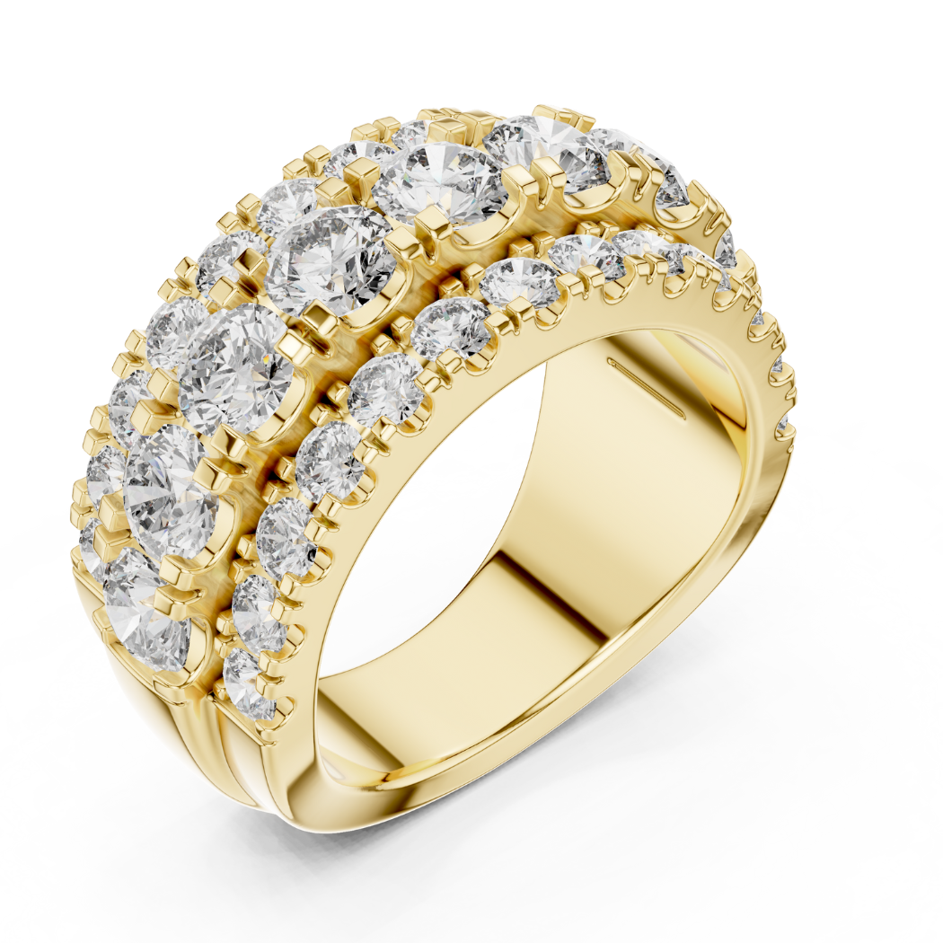 Crafted to command attention with elegance, this Diamond Ring features 39 premium round solitaires totaling 4.26 carats. Its substantial gold weight and radiant sparkle make it a luxurious addition to any fine jewelry collection — ideal for special occasions or making an everyday statement.