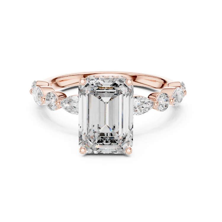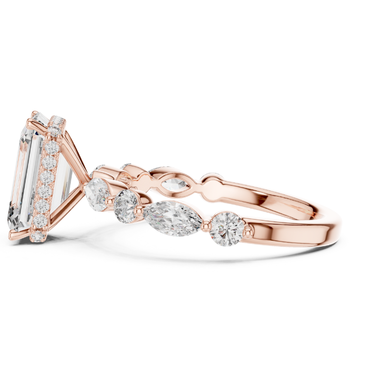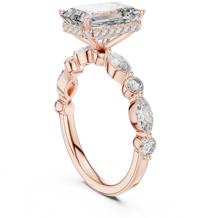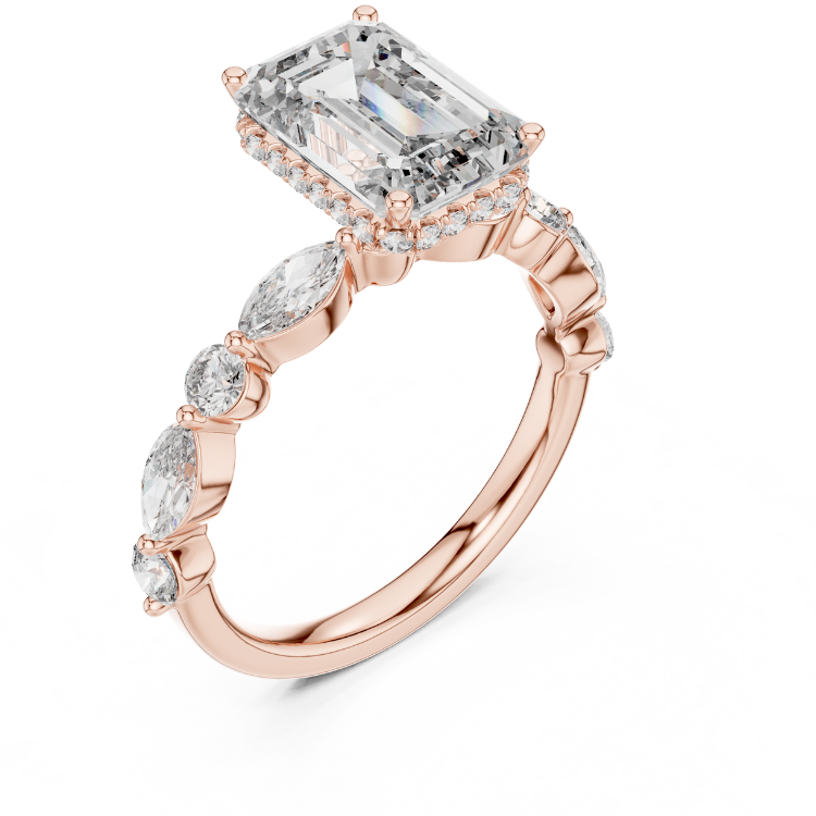 An artful blend of white, rose, and yellow gold, this luxurious ring showcases 33 HPHT diamonds in a mix of emerald, marquise, and round cuts—totaling a brilliant 3.78 carats. With a solid net gold weight of 3.00 grams and a gross weight of 3.75 grams, this piece offers bold sparkle and timeless sophistication in perfect harmony.