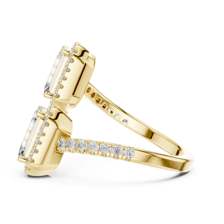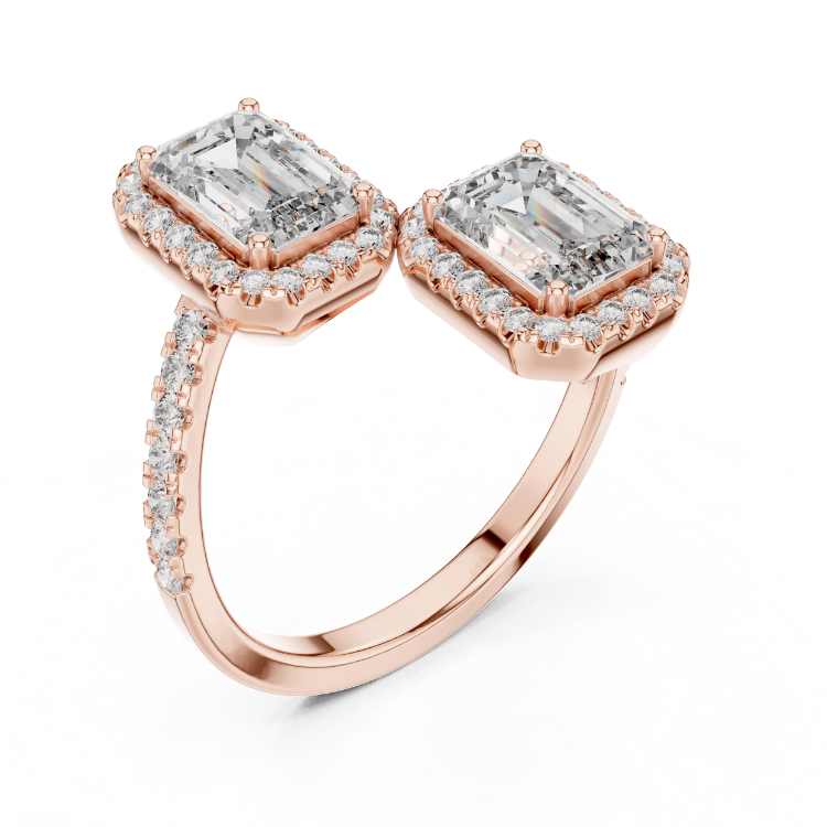 Crafted in a luxurious combination of white, rose, and yellow gold, this stunning piece features 60 HPHT diamonds in a sophisticated blend of emerald and round cuts. With a total diamond weight of 2.40 carats, a gross weight of 4.28 grams, and a net gold weight of 3.80 grams, it reflects refined craftsmanship and timeless beauty. ?