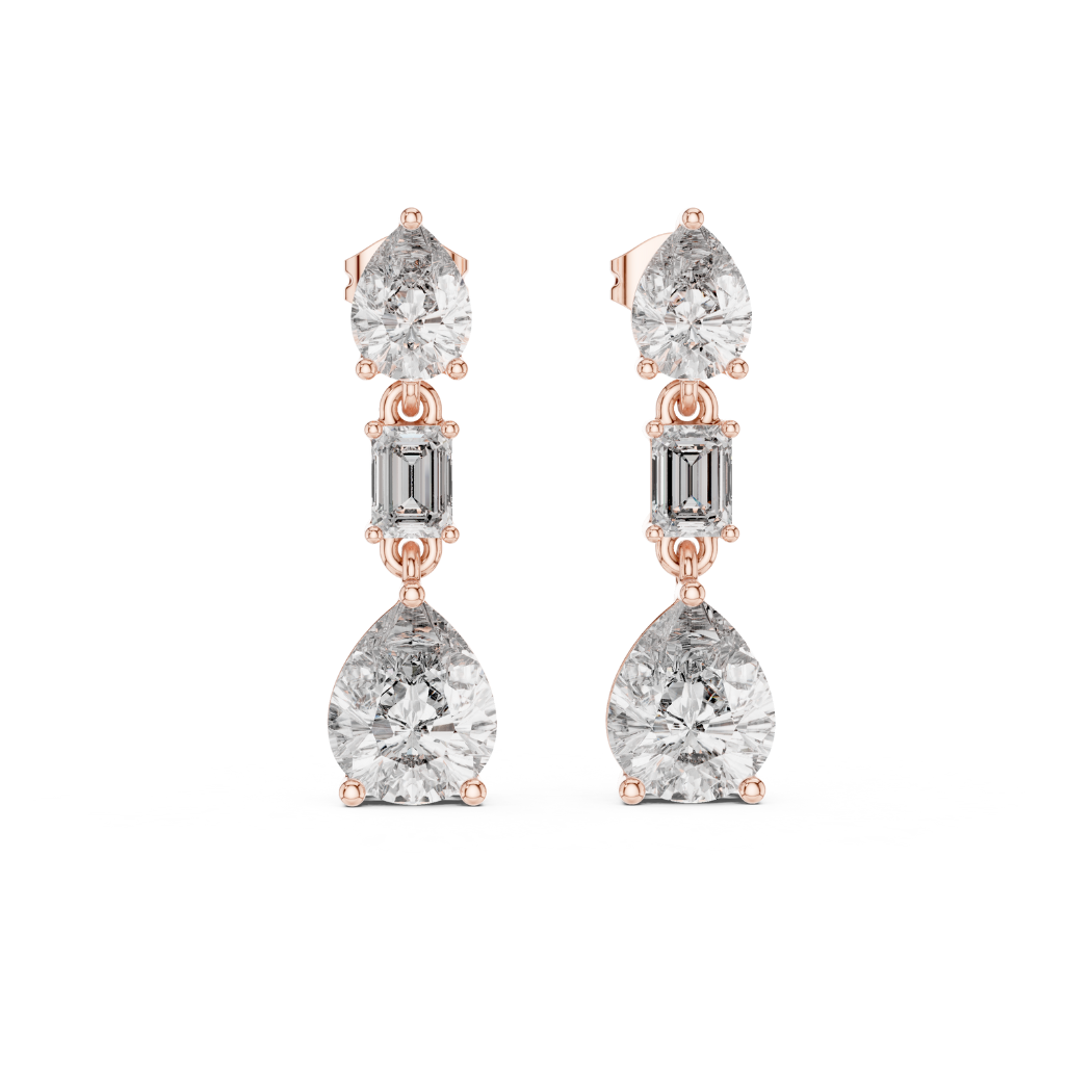 Experience a fusion of modern elegance and timeless charm with this statement jewelry piece crafted in White, Rose, and Yellow Gold. Featuring 6 striking HPHT diamonds in a mix of pear and emerald cuts, it radiates clarity and character in every facet. With a generous 5.6 carats of diamonds, this piece is designed for those who appreciate bold, minimalist luxury.