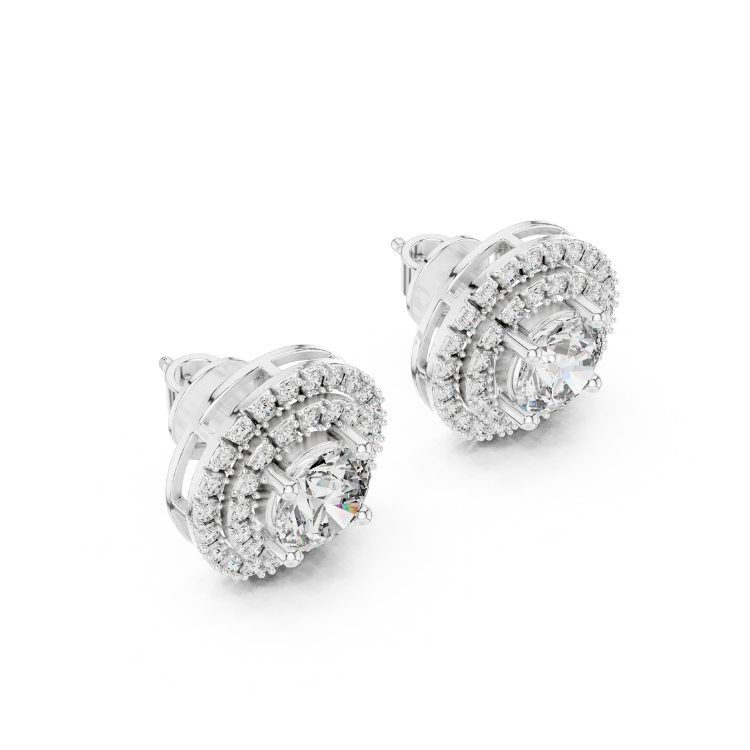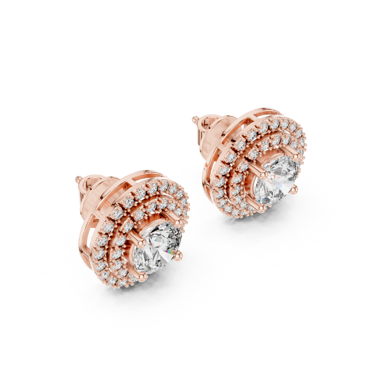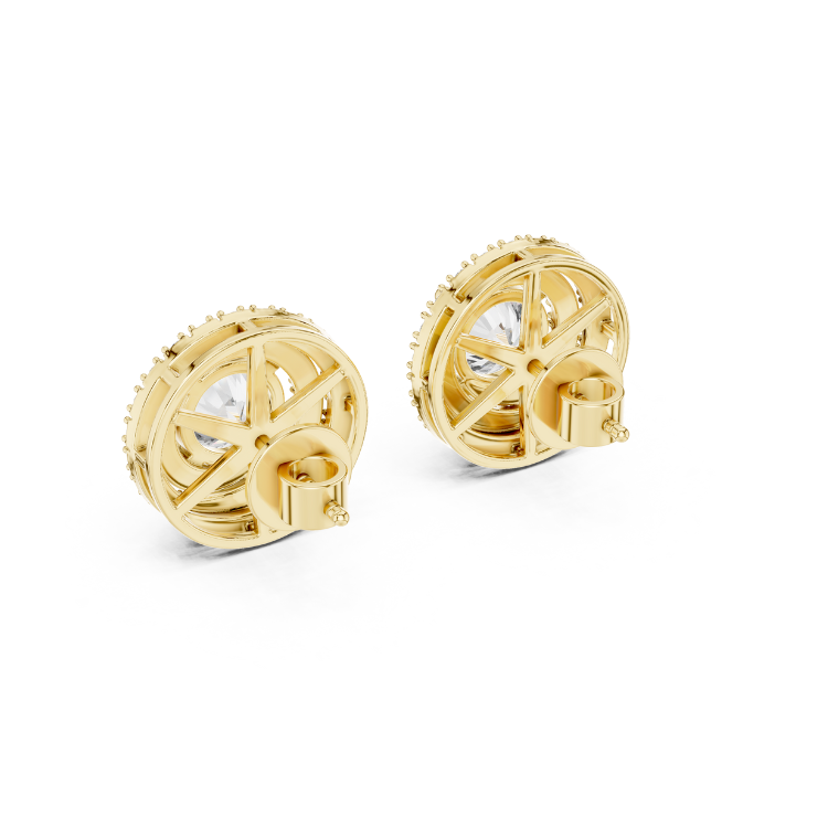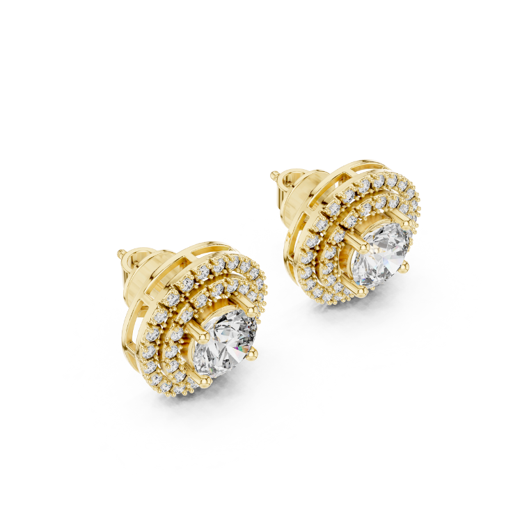 Refined 18K Gold Earrings – Round Halo Style