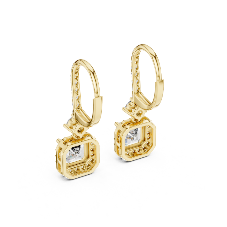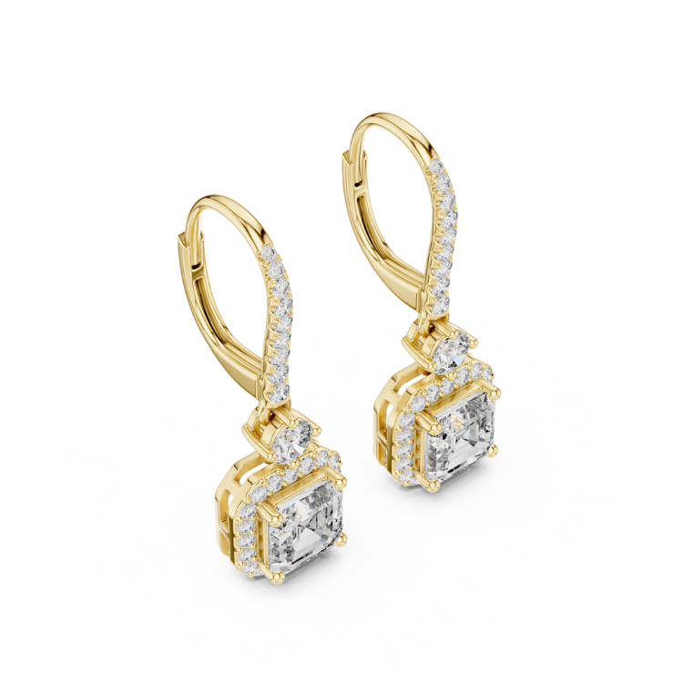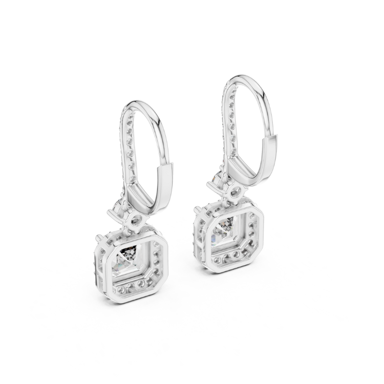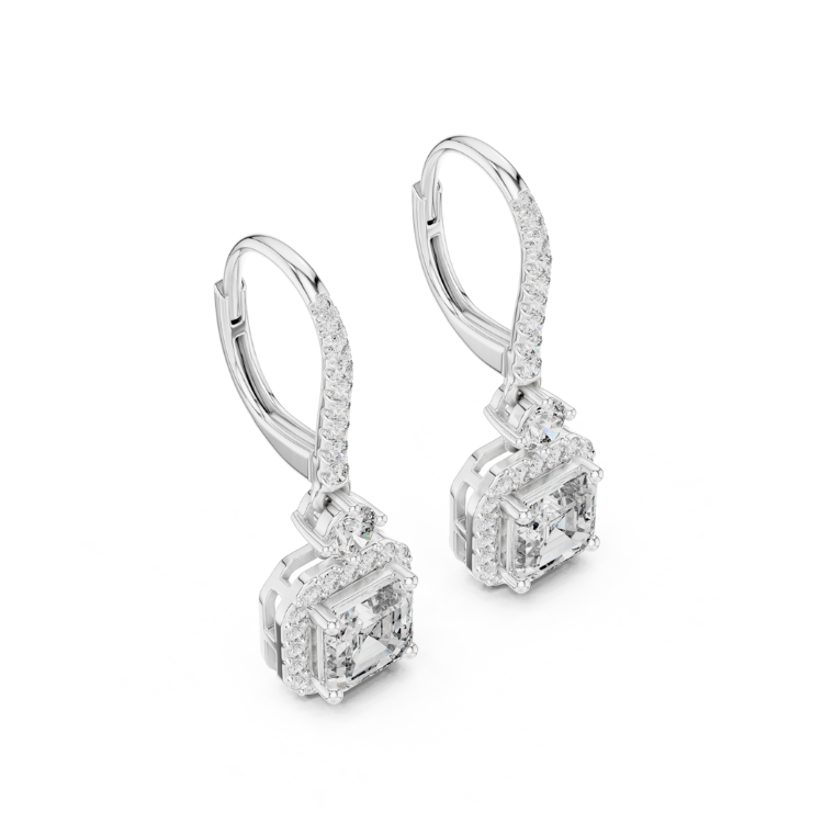 These earrings feature 62 diamonds, including a stunning combination of Round and Asscher cuts, designed to radiate brilliance and elegance from every angle. With a total diamond weight of 2.6 carats, these earrings offer a perfect balance of sparkle and sophistication.