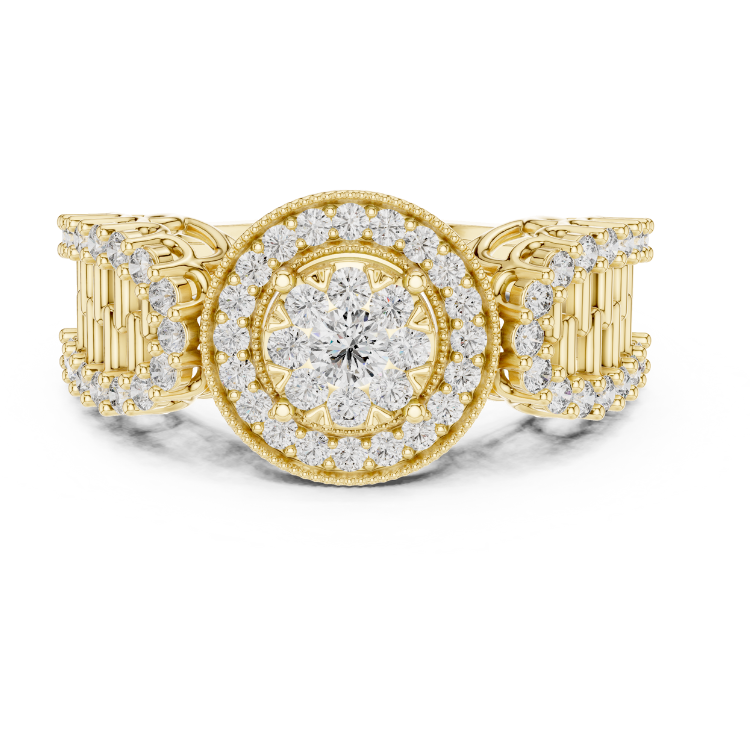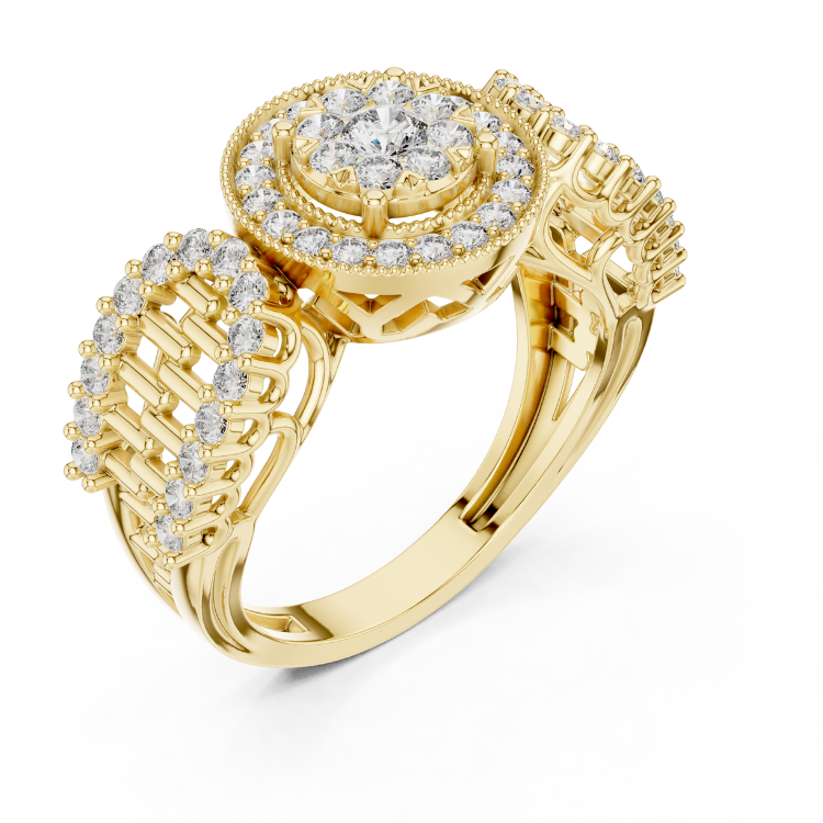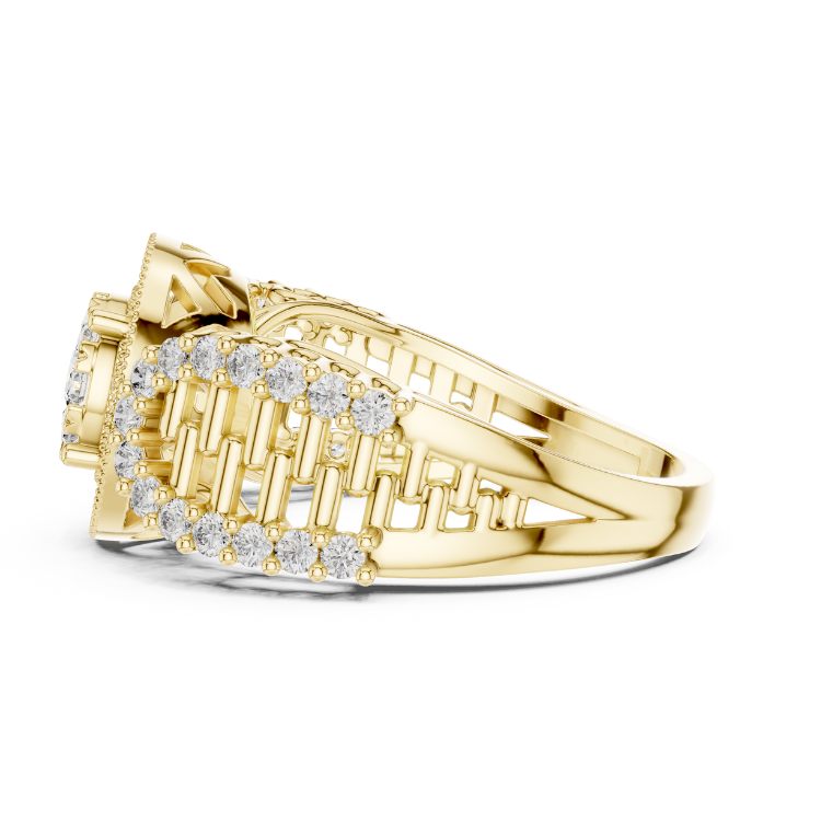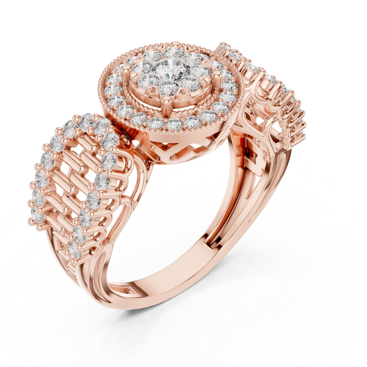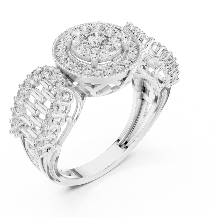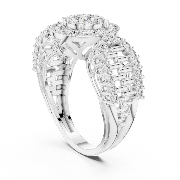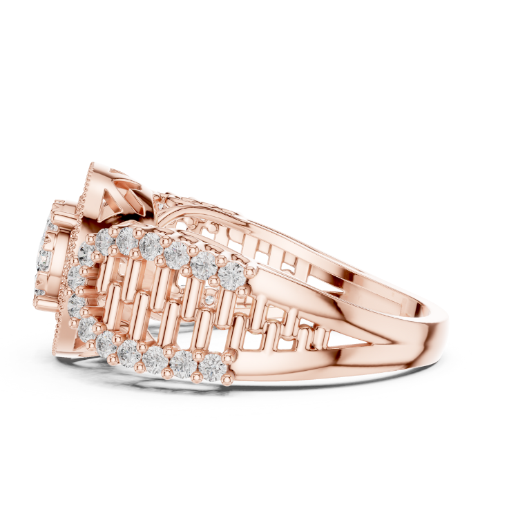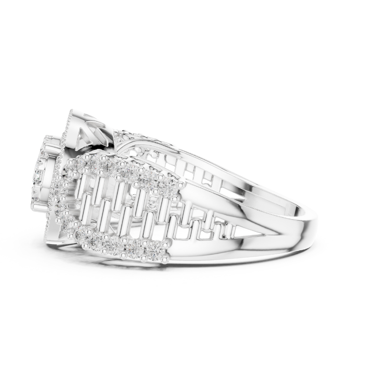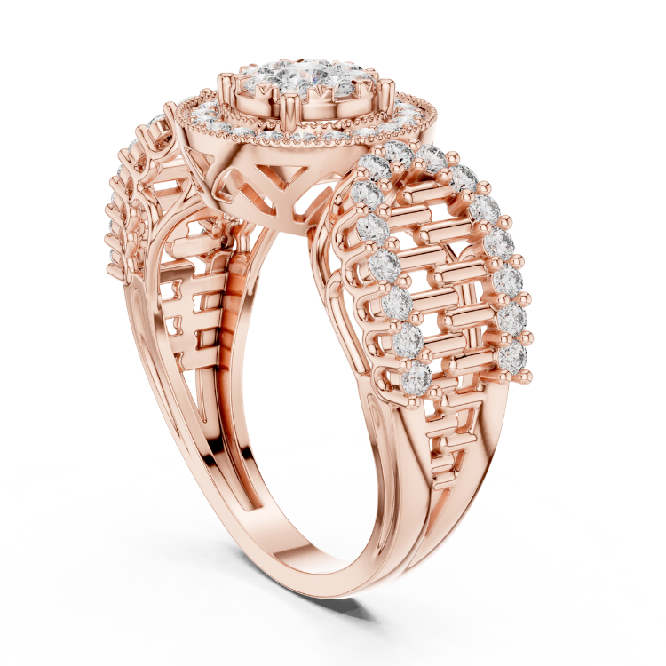 Adorned with 59 meticulously set round HPHT (High Pressure High Temperature) diamonds, the ring offers an enchanting sparkle with a total diamond weight of 0.82 carats. Each diamond is chosen for its clarity and fire, making this a radiant addition to any collection.