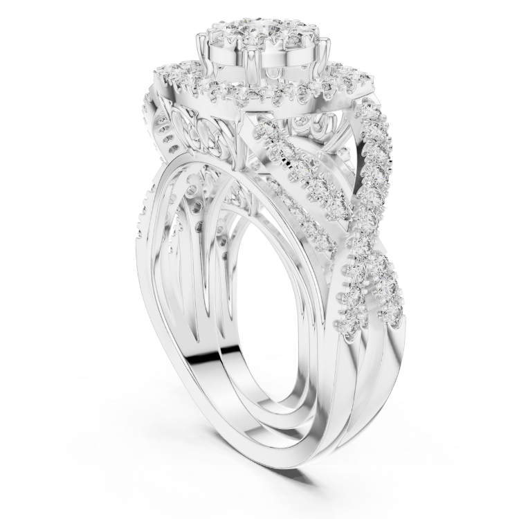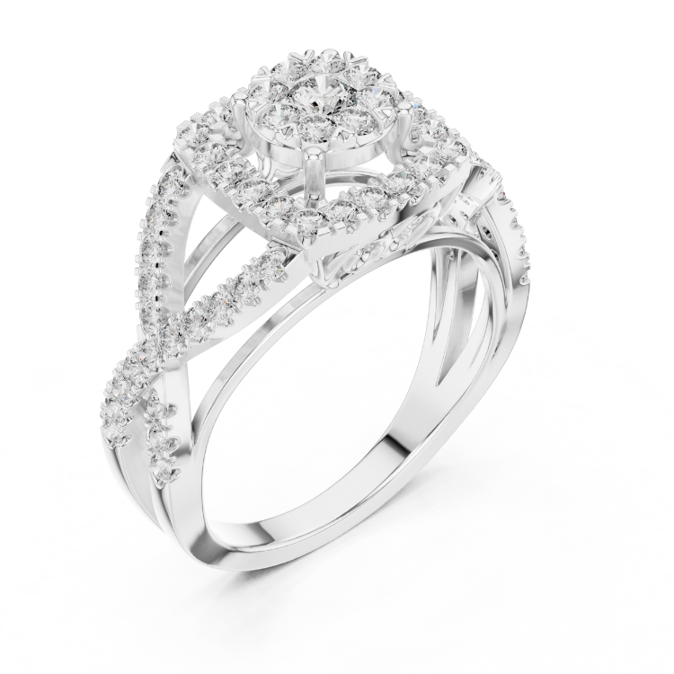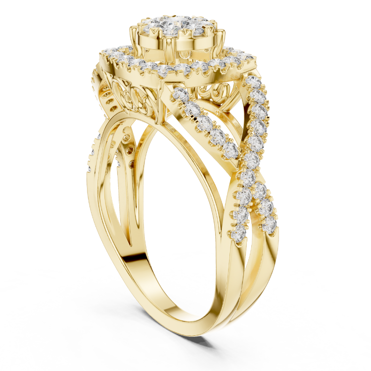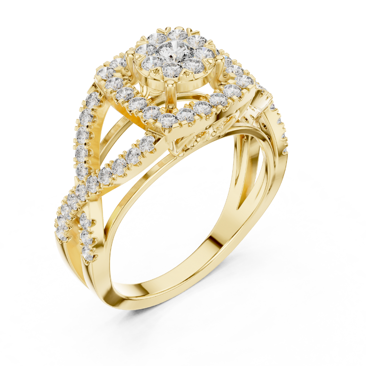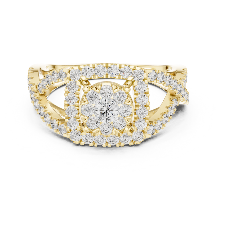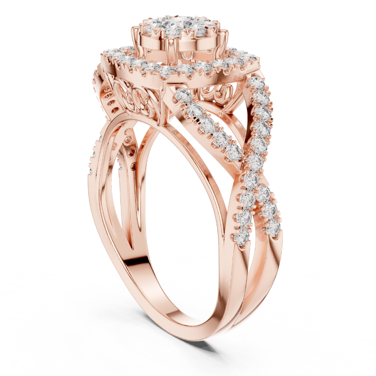 Crafted in radiant white, rose, and yellow gold, this elegant ring features 65 meticulously placed round HPHT diamonds totaling 0.86 carats. A harmonious blend of tones and brilliance, perfect for timeless sophistication.