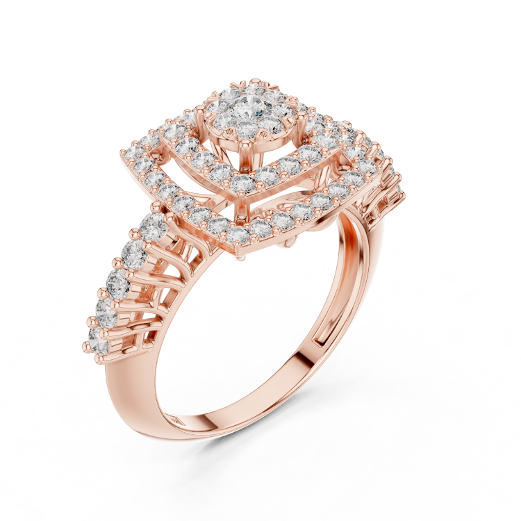 Crafted in a harmonious blend of White, Rose, and Yellow Gold, this elegant ring showcases 63 precision-cut round HPHT (High Pressure High Temperature) diamonds, offering a brilliant total diamond weight of 0.89 carats. The ring carries a gross weight of 4.43 grams and a net gold weight of 4.26 grams, ensuring both luxury and lasting durability. Whether worn alone or stacked, it delivers a refined sparkle suited for everyday elegance or special occasions.