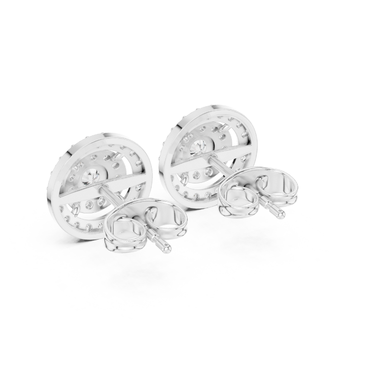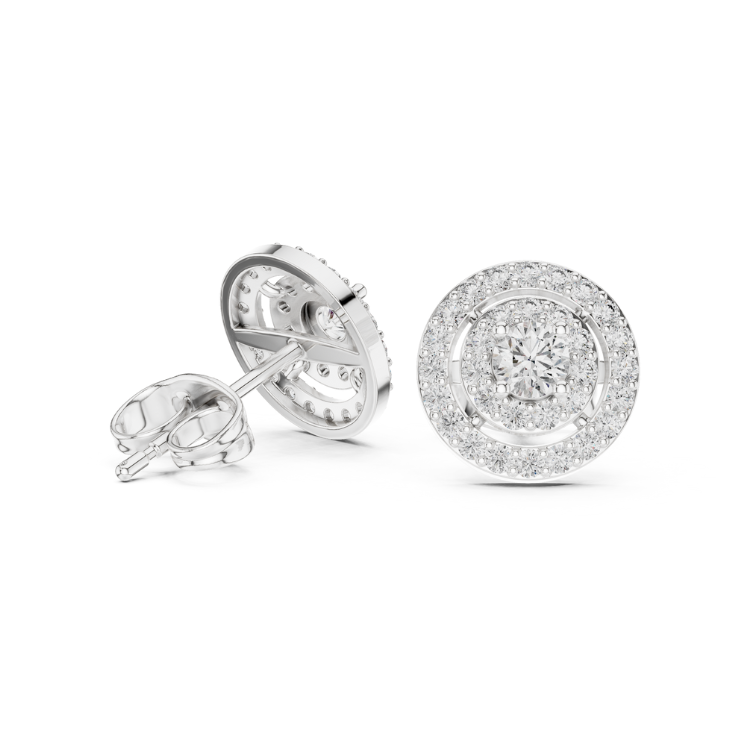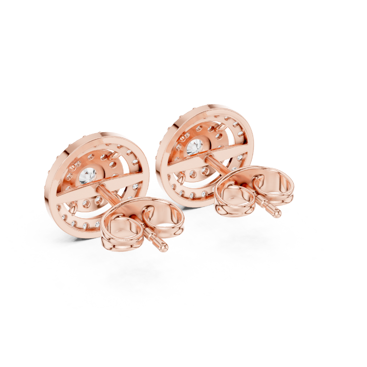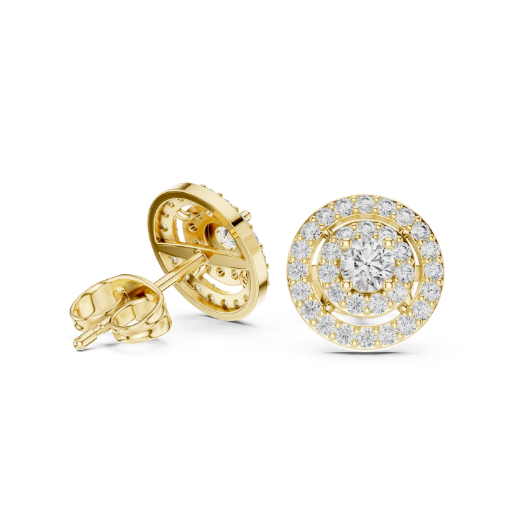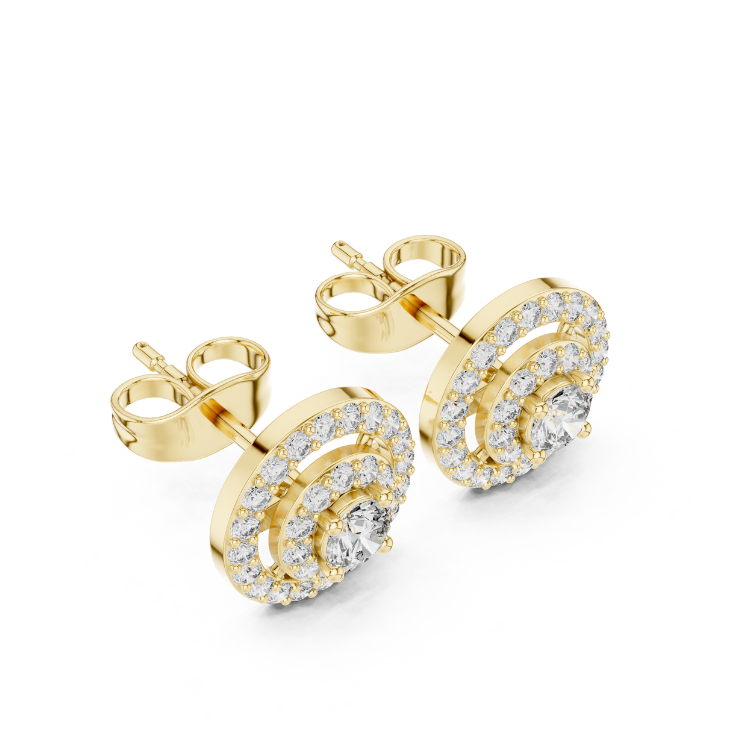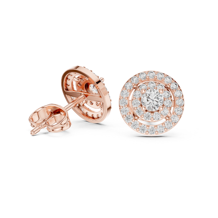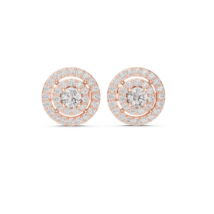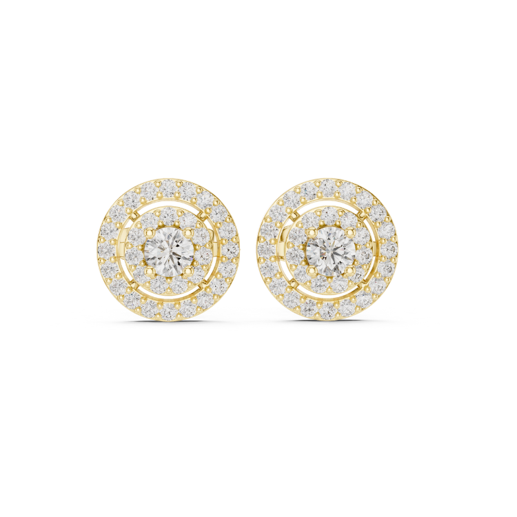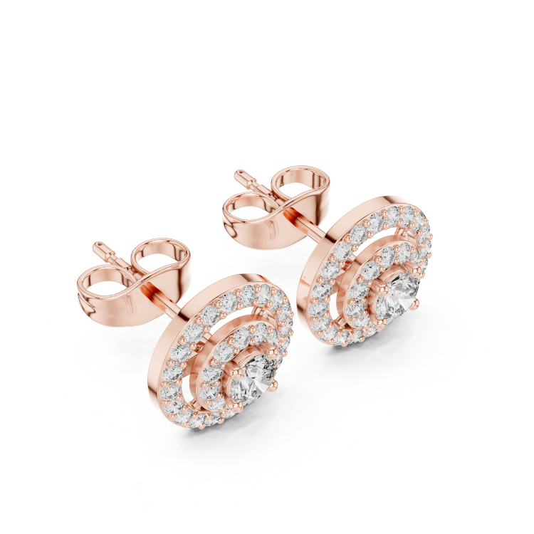 Celebrate refined luxury with these exquisite earrings crafted in a trio of gold tones — White, Rose, and Yellow Gold — that beautifully complement each other. Embellished with 64 precisely cut Round HPHT diamonds, this design is a graceful expression of brilliance and balance.